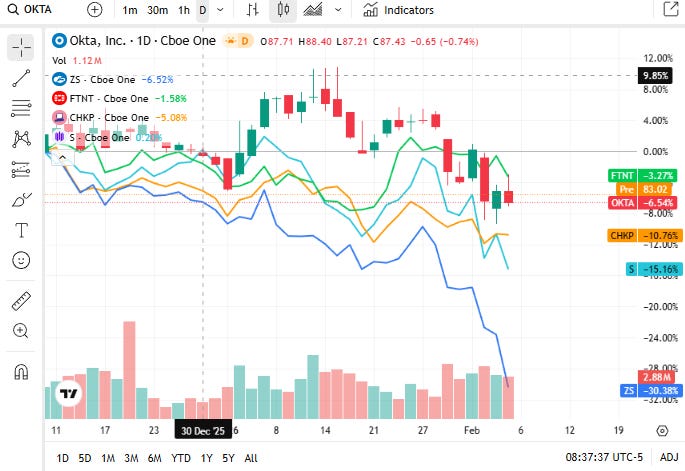 On Friday, 6 February 2026, major cybersecurity equities trended lower alongside broader technology pressure, though underlying demand narratives for enterprise, cloud, and identity security persisted.