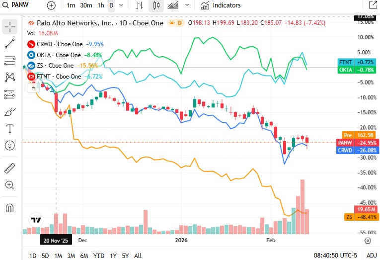 Cybersecurity stock performance on Friday, 13 February 2026 showed broad sector softness alongside wider market volatility, with rotation out of high-beta tech names and profit-taking in growth segments.