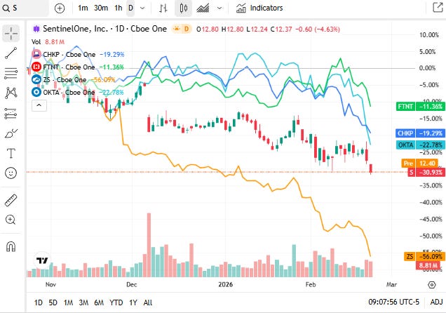 Cybersecurity stocks on Tuesday, 24 February 2026 remained under pressure from broader technology market rotation and investor reassessment of growth valuations.